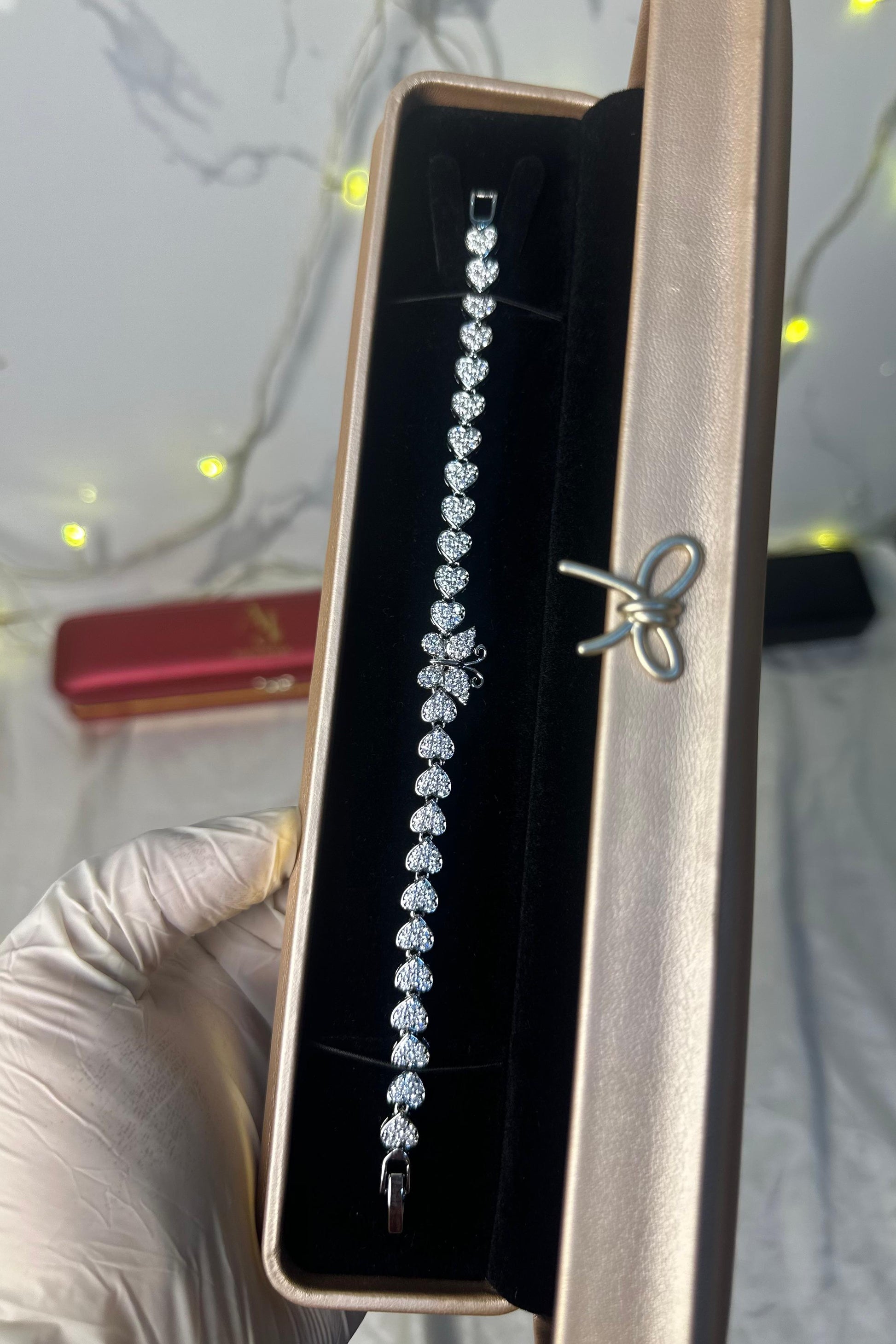 ✨ Flutter into Elegance. Capture the beauty of nature and love with the Butterfly Love Silver Bracelet. Featuring a delicate crystal butterfly centered on a chain of sparkling hearts, this piece is a reminder of freedom, beauty, and romance.